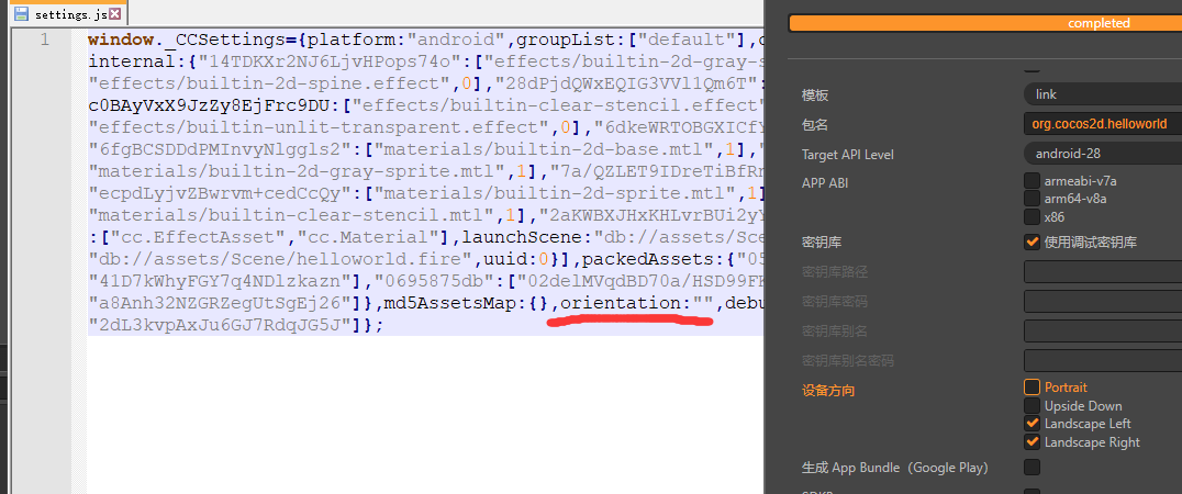 ccc 2.2.1 apk发布时settings,js内的orientation没有值
