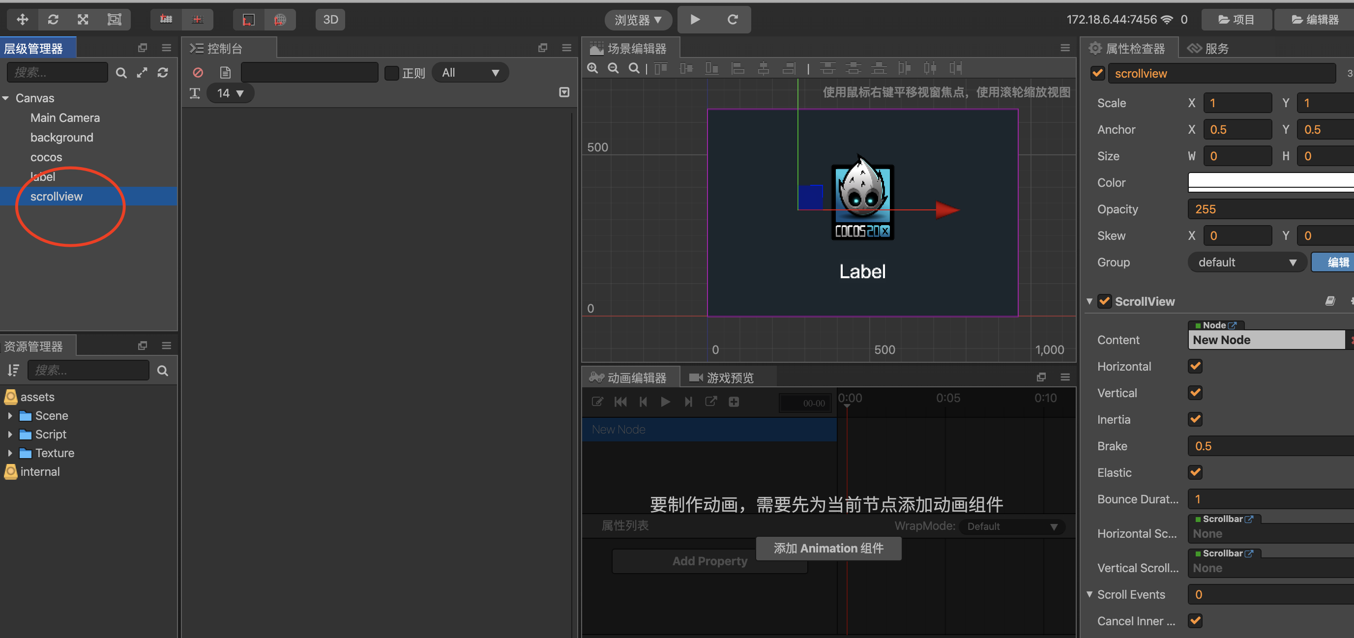 重现方式:新建helloworld 场景创建新的ScrollView。运行就会崩溃