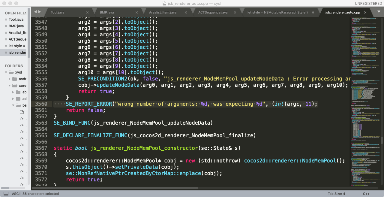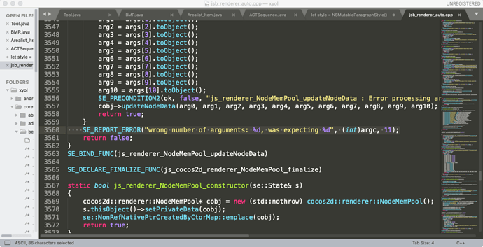 [ERROR] (/Users/hy23/Desktop/xyol_cc/build/jsb-default/frameworks/cocos2d-x/cocos/scripting/js-bindings/auto/jsb_renderer_auto.cpp, 3560): wrong number of arguments: 12, was expecting 11