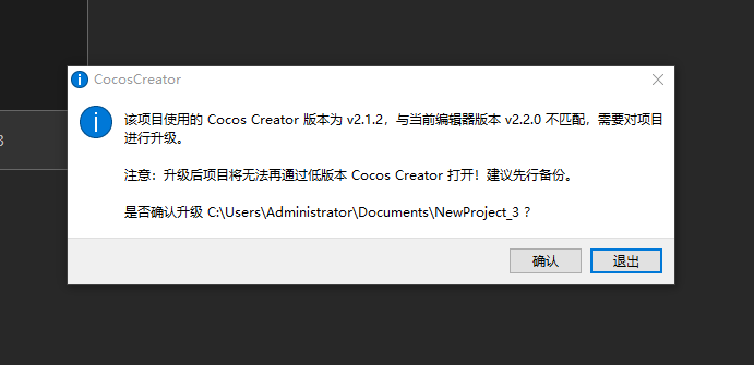 新安装的2.2.0版本新建Helloworld工程,由于卡住退出Creator以后。