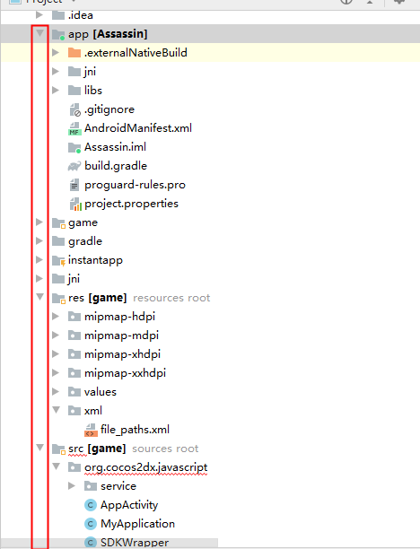 一大堆跟app文件夹同级的文件夹,这个game文件夹到底是什么用的,appactivity.java在它那,然后res跟src还在外面,旁边的source root 可以改吗,改成app里的res
