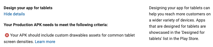 提示的链接是这个: https://developer.android.com/docs/quality-guidelines/tablet-app-quality#use-tablet-icons