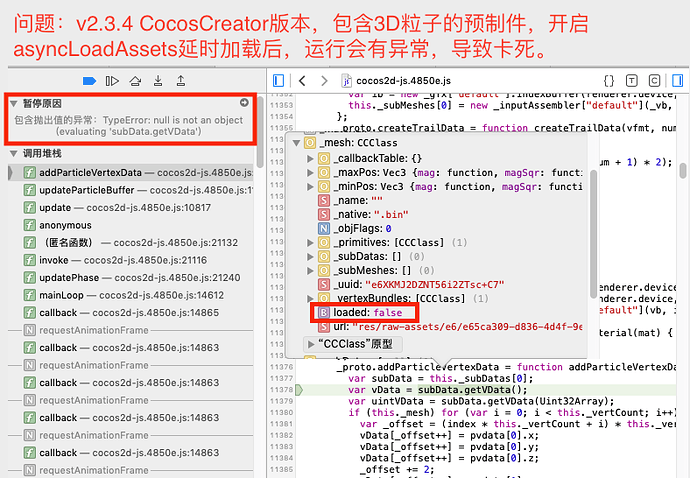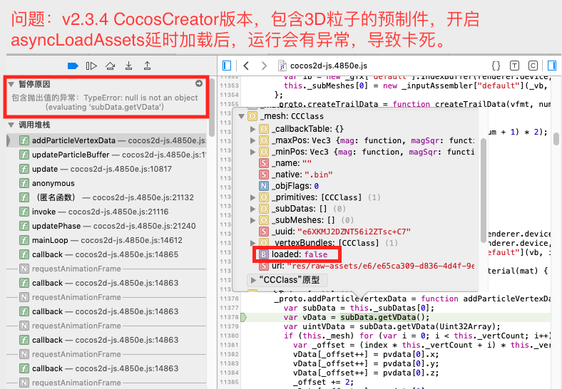 重现方式:包含3D粒子的预制件勾选延迟加载 asyncLoadAssets = true