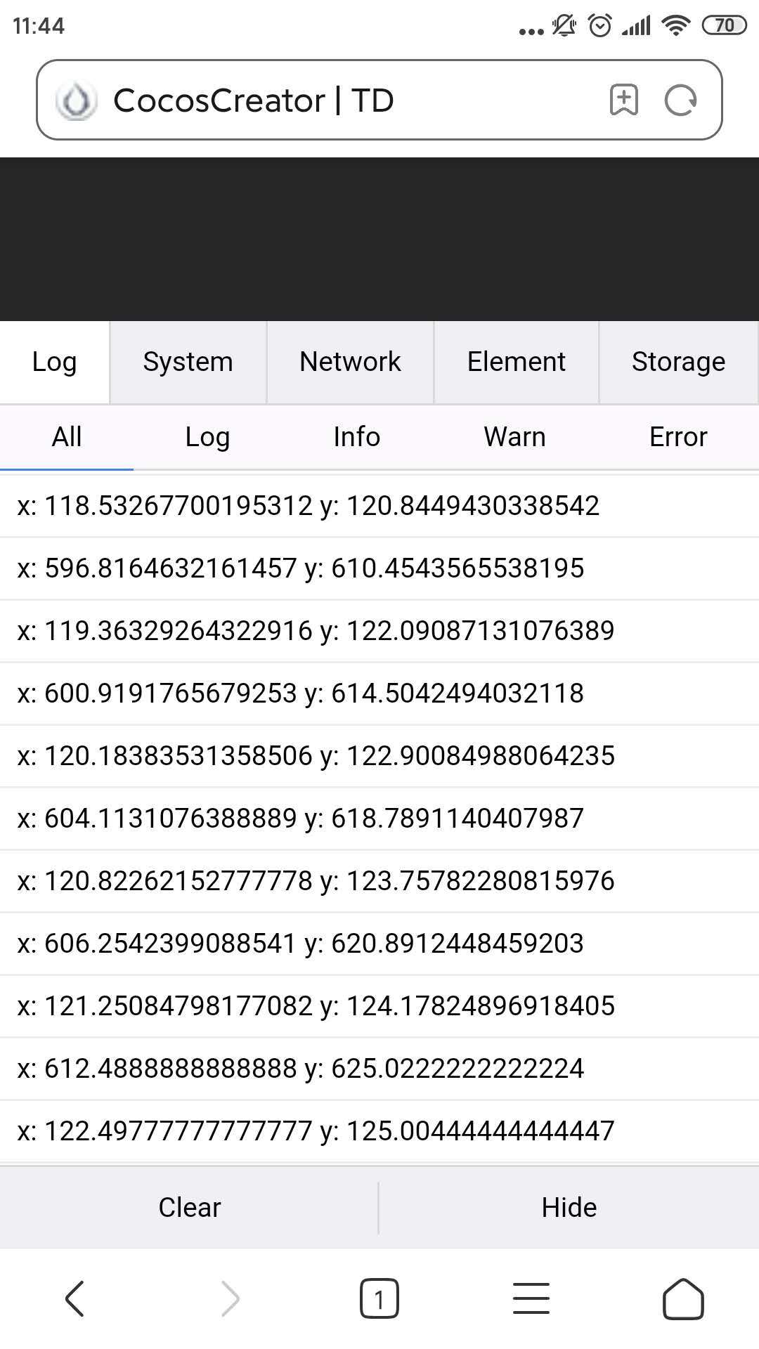 console.log(“x:”, pos1.x, " y:", pos1.y);