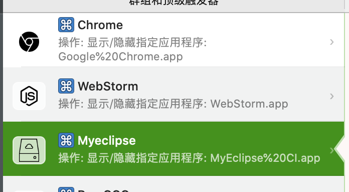 我设定了这些按钮来直接切换到程序,webstorm或者eclipse 什么的QQ 微信都可以,而唯独CCC不会相应这个操作