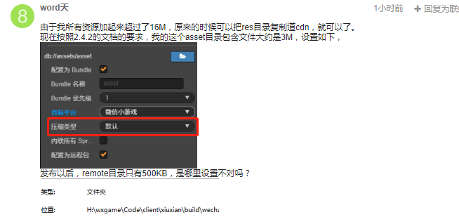 现在按照2.4.2的文档的要求,我的这个asset目录包含文件大约是3M,设置如下,