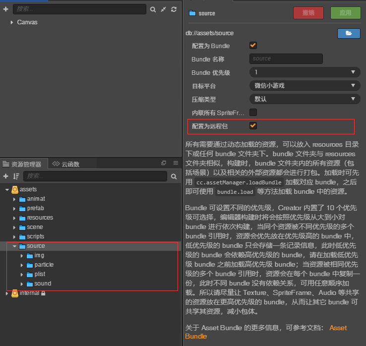 我看文档里面写了微信小游戏会自动加载远程资源:
