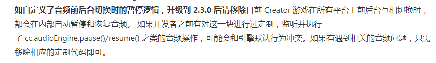 根据文档要求,并没有执行过cc.audioEngine.pause()/resume() ,并且在小程序onshow,onhide事件中也没有任何跟音乐相关的操作。