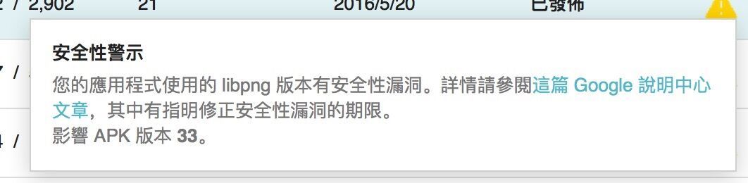 最近2.x的版本提交APK到谷歌商店提示libpng版本有安全漏洞
