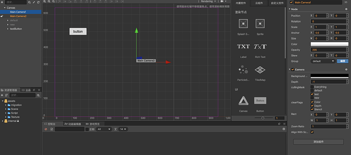 我们都知道摄像机可以拍摄不同分组的渲染节点,那么如果我们的让不同分组的节点进行了嵌套,然后使用多台摄像机各自拍摄,会得到怎样的结果呢?如果同时存在多台摄像机同时拍摄同一个分组的节点,是否节点会被渲染多次?如果是个按钮,按钮点击位置在哪?