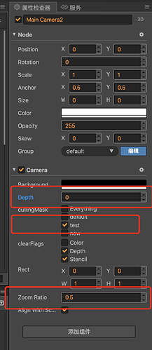 然后我猜测可能是由于摄像机节点层级导致的,于是我调整层级结构如下,让camera2在camera1上面