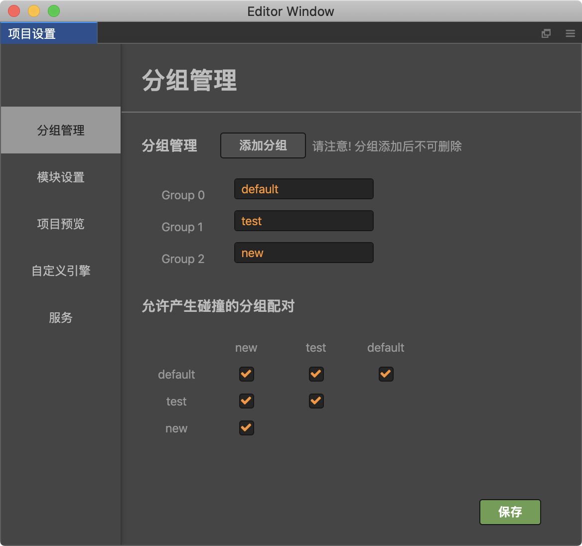 可以看到,除了渲染出test分组的节点之外,还多渲染出来了个default分组的节点,这与示例1是不一样的。对比之后,我做出猜测,引擎组应该是对default分组做了特殊的处理,使得default分组会自动向上遍历,与父节点分组保持一致。