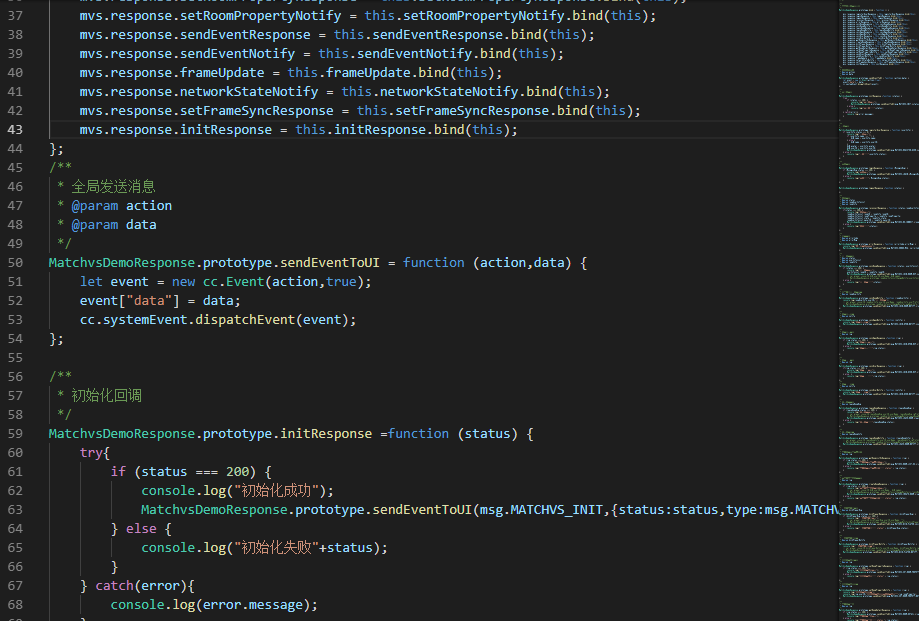 matchvsLib 里的MatchvsDemoResponse.js脚本文件里已经将回调都注册好,并通过cocos系统事件发送出来.所以我们只要注册相应的系统事件就好。方便低耦。