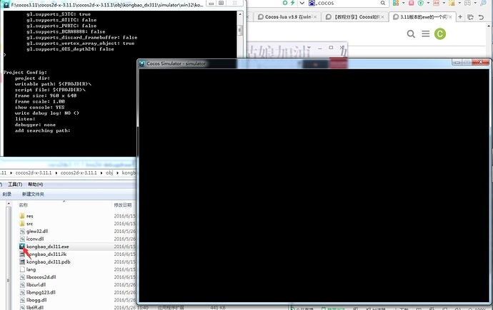 运行exe不是黑屏,但没有控制台,而且整个屏幕显示和vs编译出来的也不一样……