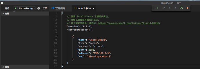 是的呢,点VSCODE调试里的三角形箭头 一连接到 就这样了