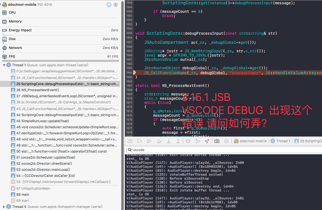 cocos2dx 3.15.1 JSB IOS 工程 在真机上测试填的正确的IP地址 ,设备连接到了。