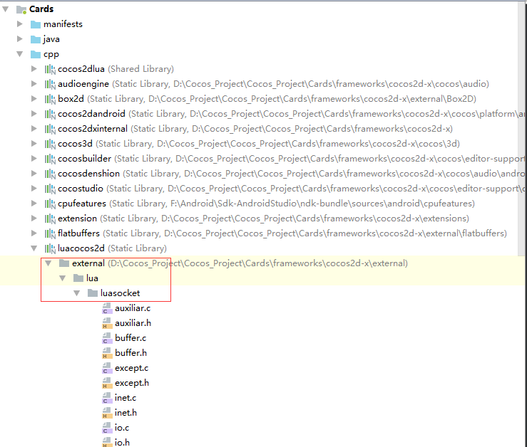 刚升级了最新的3.16引擎,Android studio 3.0 打开项目后,运行demo 正常,看了项目结构 ,工程目录cpp目录,是怎么生成的,如果需要新加一些lua库,比如skynet 网络协议库,该怎么导入,Android studio 才可以编译通过?