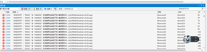 主要是为了cocos 在Windows上面也能显示WebView 用了别人提供的https://download.csdn.net/download/jin1107849331/10445133的代码,在3.10上面使用没问题,现在换到3.17 用vs2017编译的时候就报上述问题,求教各位大大 怎么改