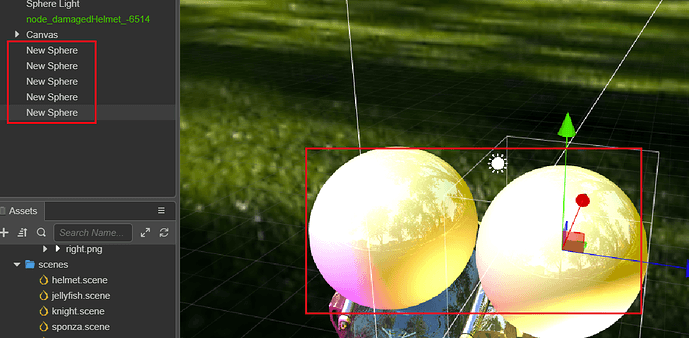 如图复制一堆球体,按道理来说,材质完全一直,在层级树里相邻,应该就自动合并了吧,