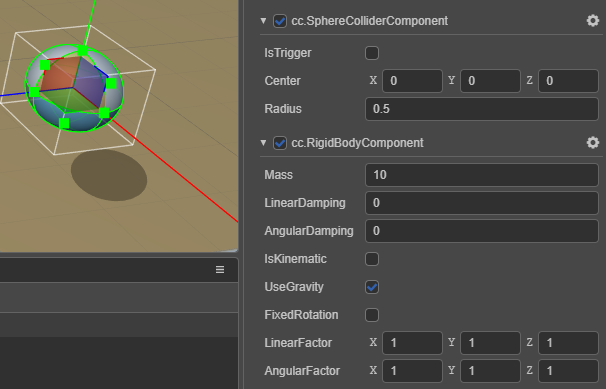 然后再给球加个 RigidBody 组建,再次运行,发现球就旋转不了了
