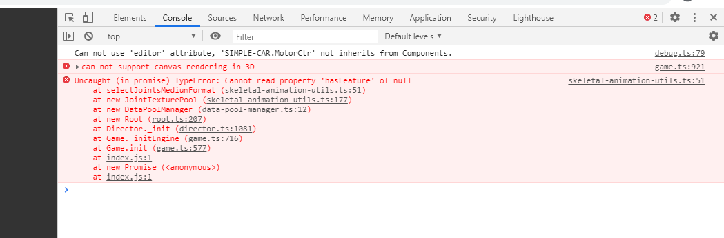 如图 我自己新建的项目 和跑官网的demo都报上面的错,2D是正常的