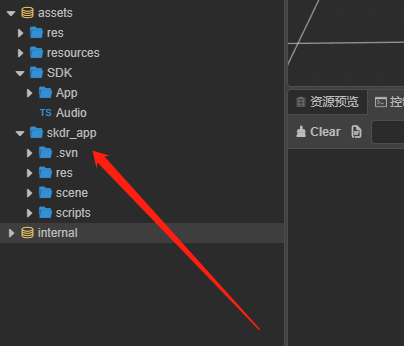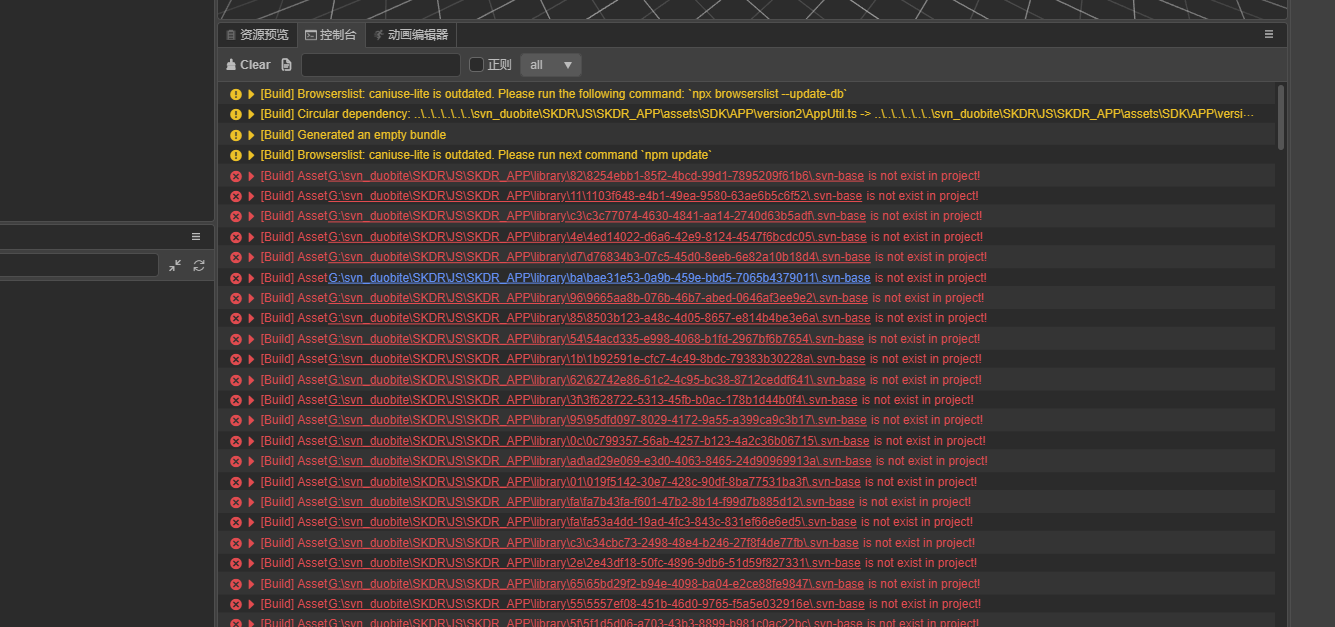 项目里面没svg-base 这个文件,复现的方式就是在一个项目asset里面继承另外一个项目就会出现这个.svn文件