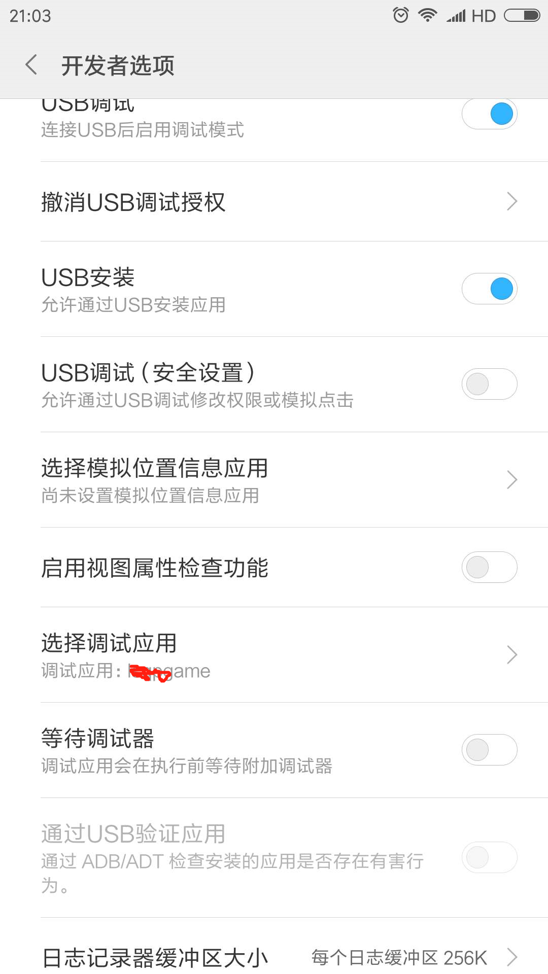 遇到的问题,我用AS进行调试时,一直显示waiting for debugger。我试了网上说的不少办法,但仍没有解决,该怎么办?下边是我的手机设置:
