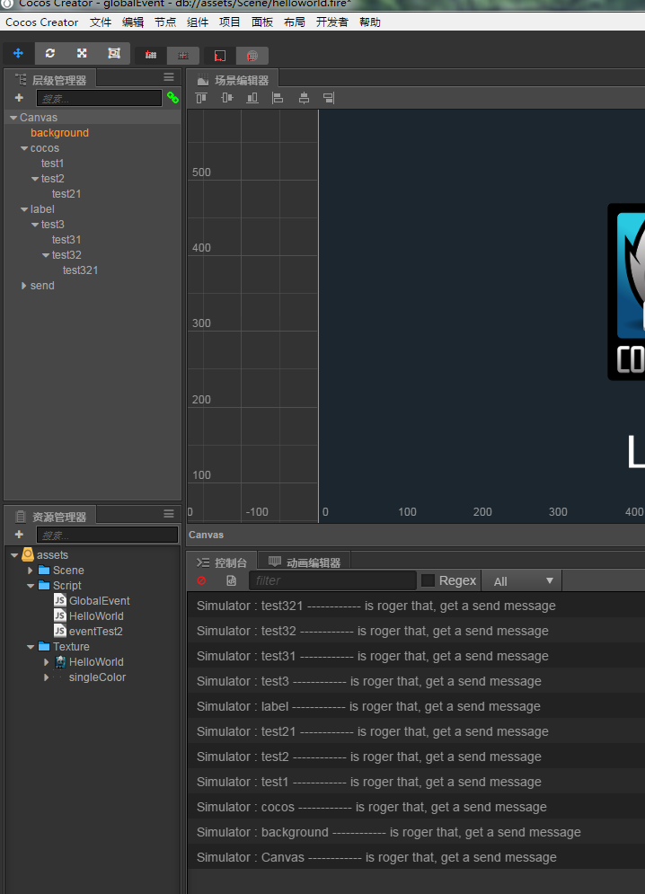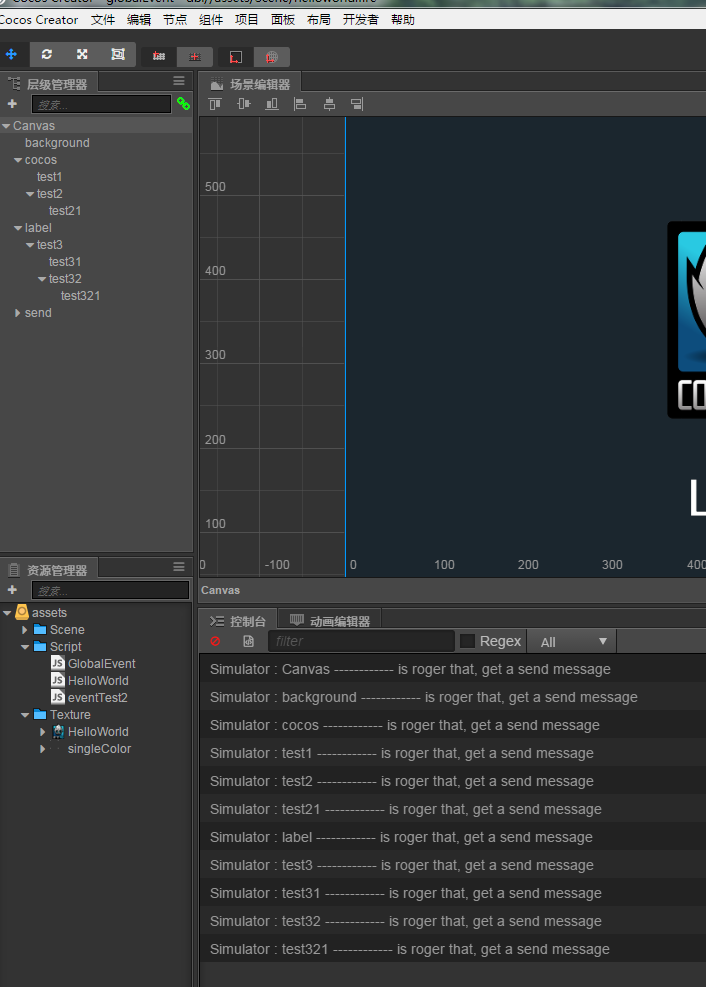 就是在cc.dirctor上添加一个事件管理器(在Canvas的onLoad里进行,这样能保证Canvas的所有子节点以及层级管理器里在Canvas下面的节点都能添加和发送事件),并且如果是在onLoad阶段添加的事件,统一放到start阶段进行派送,因为我这个是根据事件的添加顺序进行派送的,并且派送必须在发生在添加之后,但是有可能派送事件发生在监听事件之前导致事件派送失效,所以为了保证理想的流程,就把onLoad阶段添加的事件统一放到start阶段派送(再次感谢@hp134800同学提供的思路)