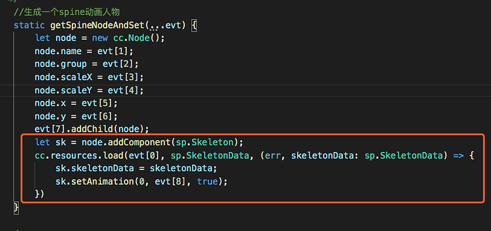 let spine = node.getComponent(sp.Skeleton); spine.clearTracks(); spine.skeletonData = null; require("gameHelper").loadSpine(this.assemblePath(res), (spdata) => { spine.skeletonData = spdata; // spine.setEndListener(()=>this.clearNode(node)) spine.setAnimation(0, 'animation', true); });