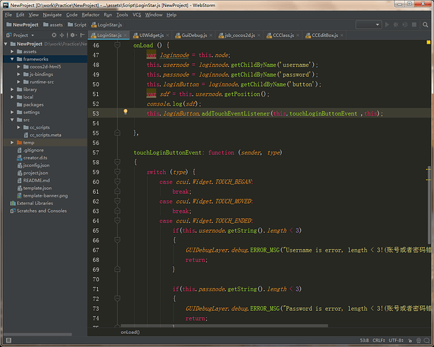 用webstorm和cocos creator做的,里面的frameworks和src文件夹都是在cocos2d-js完好的项目拷贝过来用(不知可不可以),在效仿那个完好的项目的addTouchEventListener出现了错误,应该怎样改,或者有哪些相同可行的方法代替吗