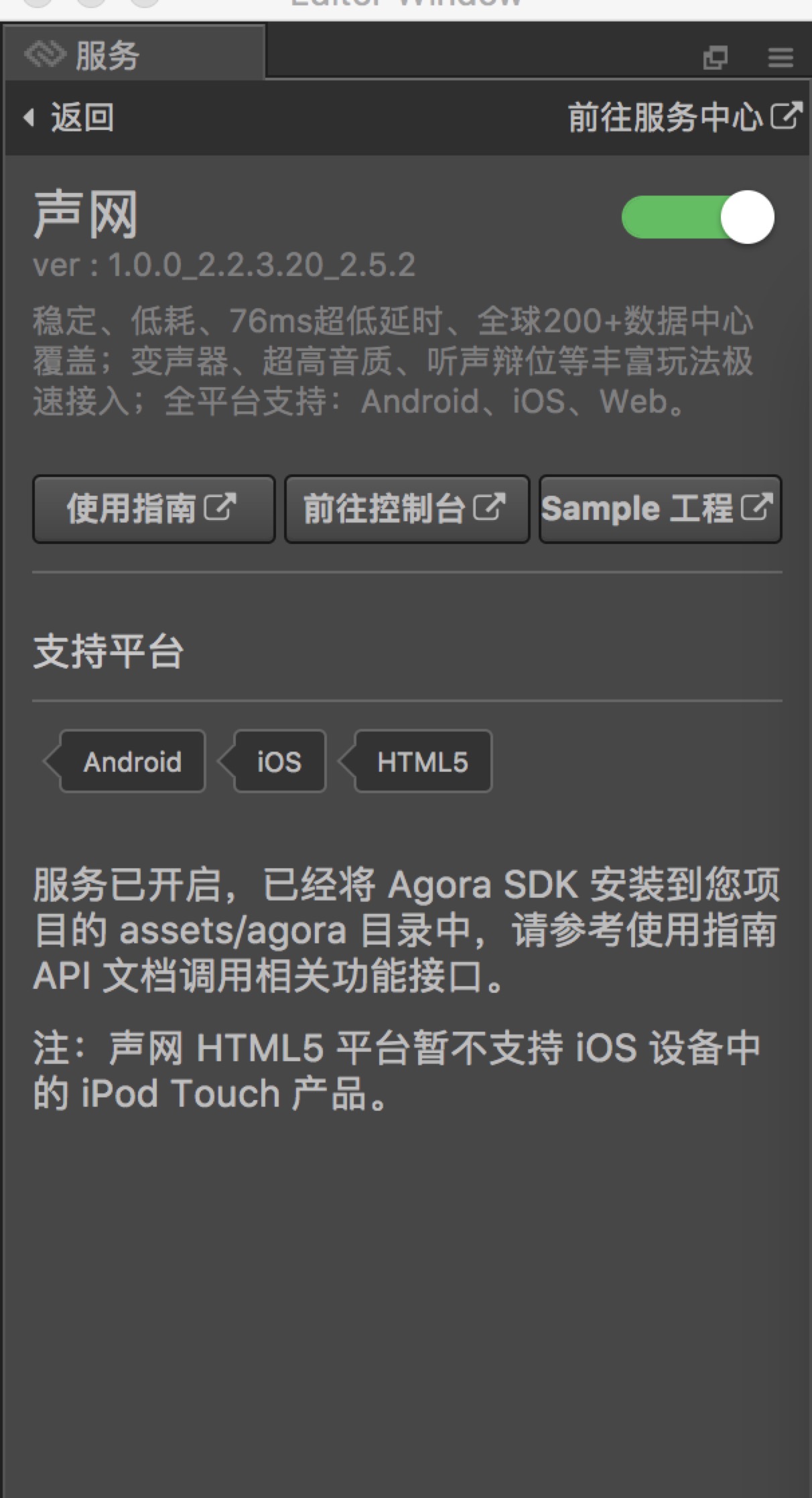但是在目前官网的2.0.9的版本中,服务面板中并没有声网相关的配置