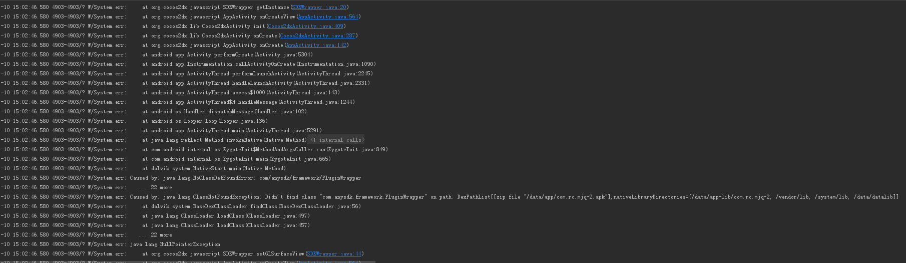 andriod api19闪退,cocos版本1.7,另外我没有集成过anysdk怎么会说找不到这个class
