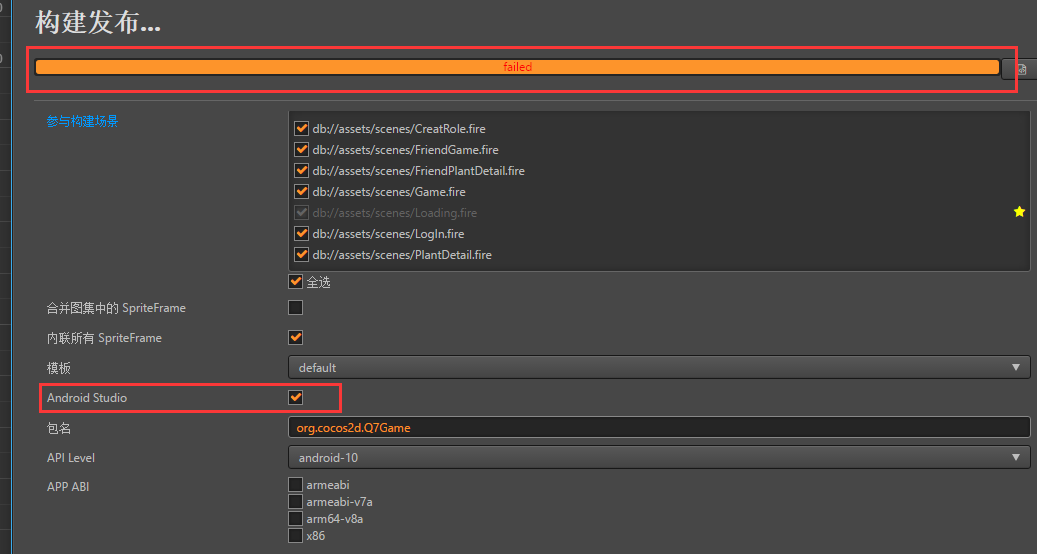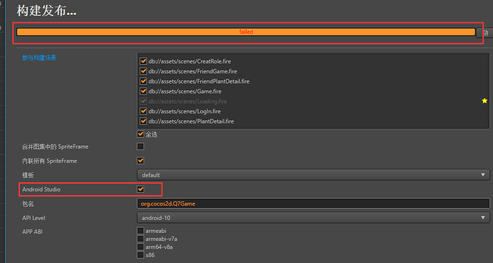编译android项目勾选android-studio就编译失败,不勾选就ok,怎么破!!! 如下图: