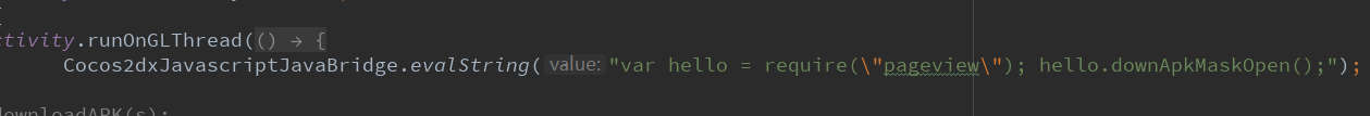 Cocos2dxJavascriptJavaBridge.evalString(“var hello = require(‘HelloWorld’); hello.prototype.load(”"+img+"");");