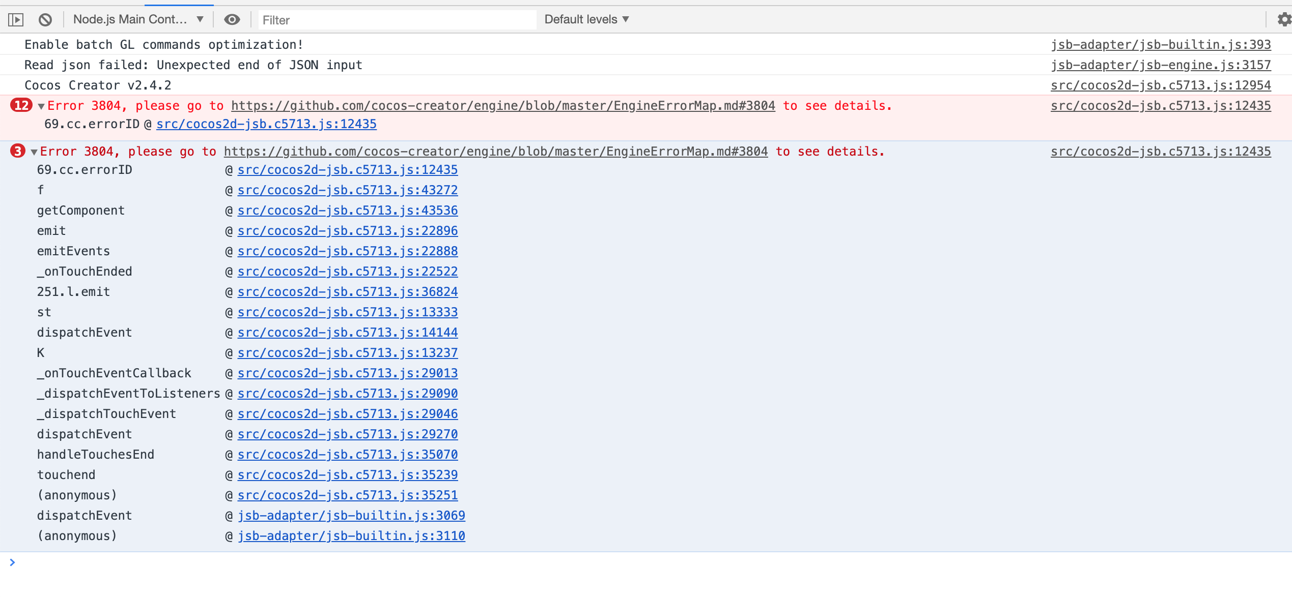 项目在Web平台能够正常运行。但是编译完成在Android上运行报错Error 3804