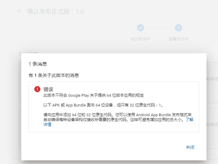 打包Android上传googlePlay提示不符合64位系统咋整。卡这好几天了o(╥﹏╥)o