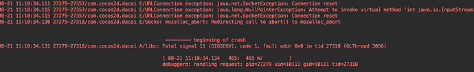 你能在Cocos2dxHttpConnection.java中try catch相关的模块中,查下是哪个函数调用,哪个变量是null么?