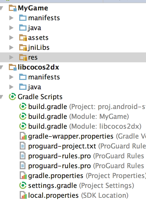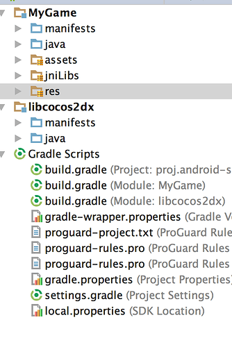各位好,我创建了一个新的工程,在xcode里面可以看到场景文件HelloWorldScene.h和HelloWorldScene.cpp单是用android studio打开为什么看不到场景文件,但是运行却能看到和xcode 编译出来一样的场景界面。