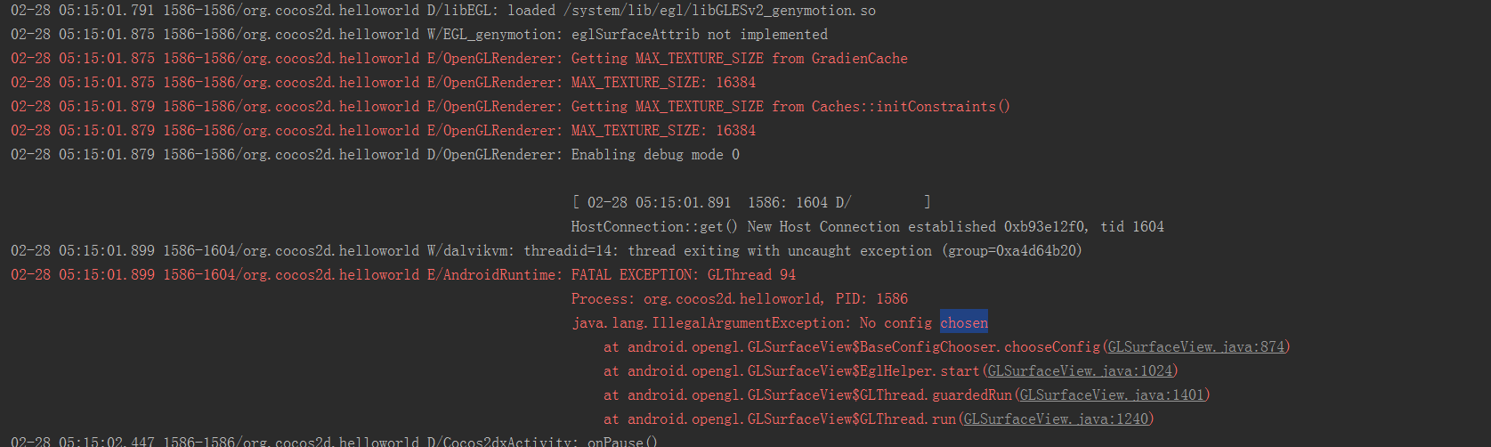 2.用studio成功打开creator编译的项目,运行的时候提示FATAL EXCEPTION: GLThread 94的错误