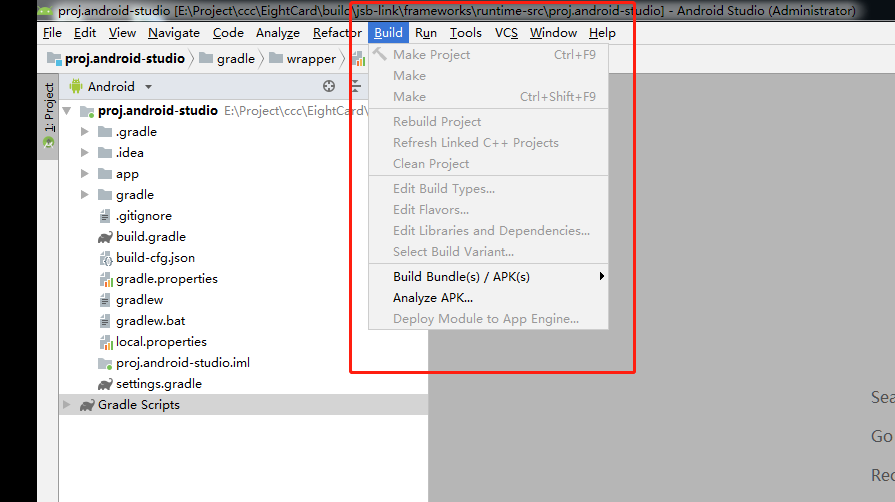 构建了项目以后使用android studio打开没有gener sign的选项不能生成apk文件