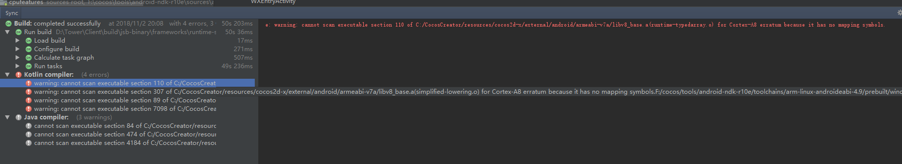 e: warning: cannot scan executable section 230 of C:/CocosCreator/resources/cocos2d-x/external/android/armeabi-v7a/libv8_base.a(ast-types.o) for Cortex-A8 erratum because it has no mapping symbols.