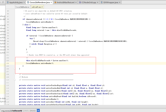 我想知道Cocos2dxRenderer.nativeRender();是用干什么的?