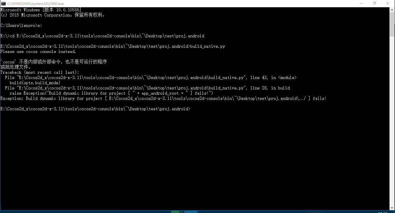 cocos2d-x v3.11,NDK-r10c,Python2.7.11