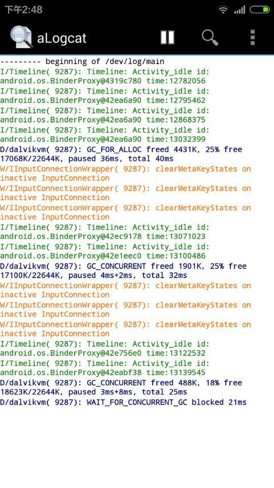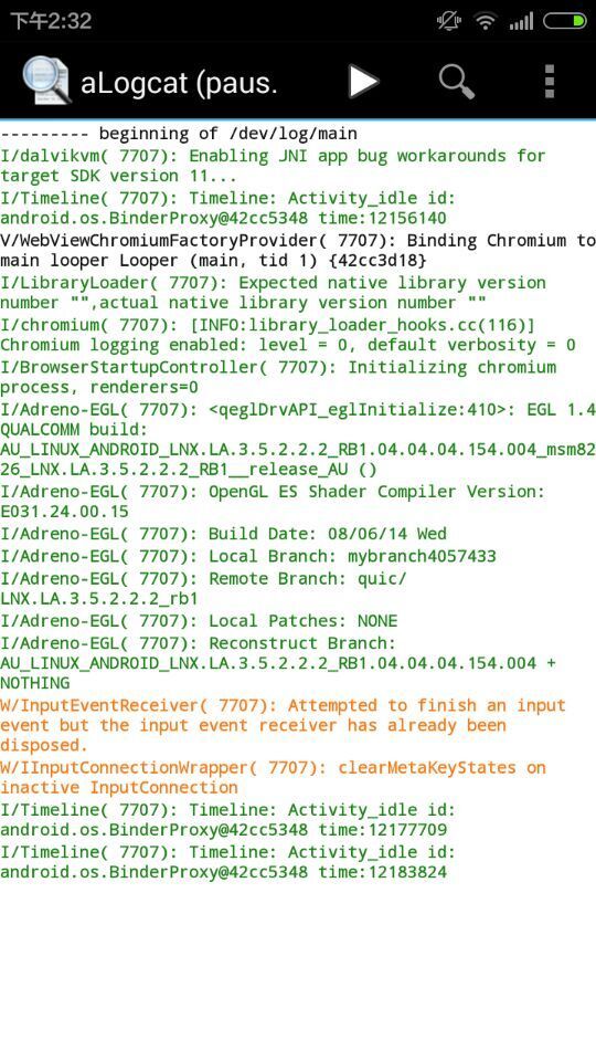 这些 log 是你先开了 logcat 然后在设备上打开程序获取到的吗?没看到跟程序相关的 log…
