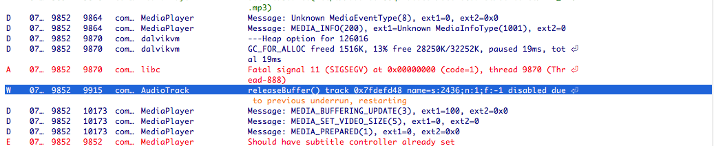 releaseBuffer() track 0x7fdefd48 name=s:2436;n:1;f:-1 disabled due to previous underrun, restarting