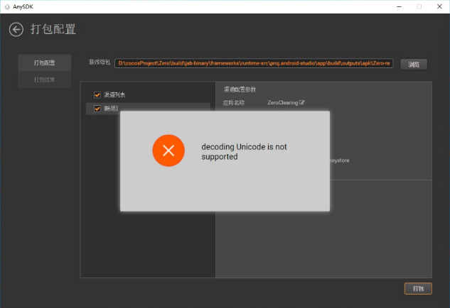 按打包按键的时候出现的,没有包体 产生,直接弹出这句话。