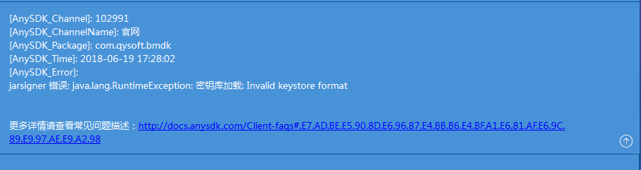 AnySDK打包项目报错:无效的证书。求大神指点 是我创建的时候错了吗