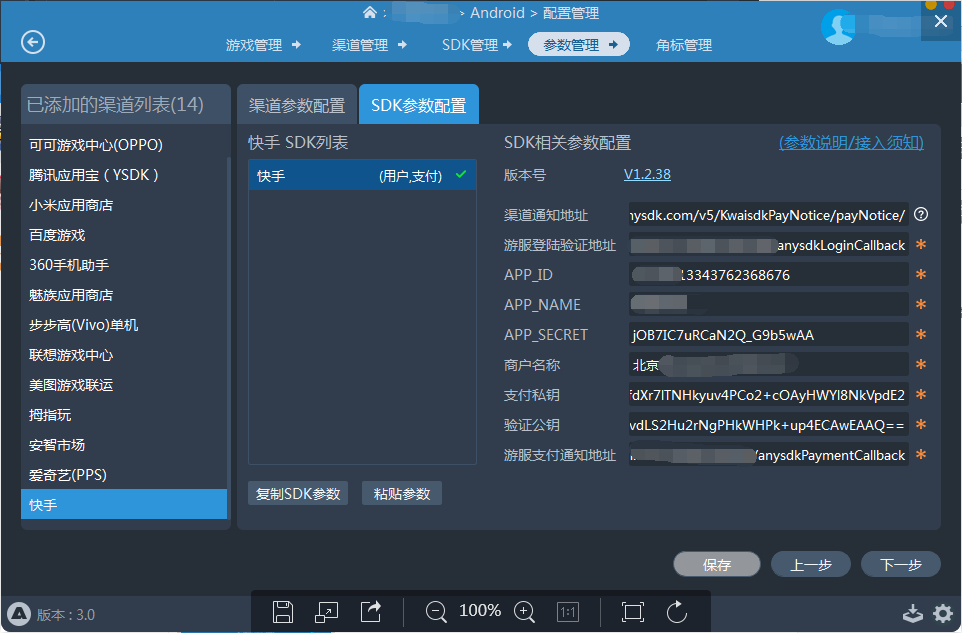 所以想请教一下 快手的参数应该如何配置。 谢谢