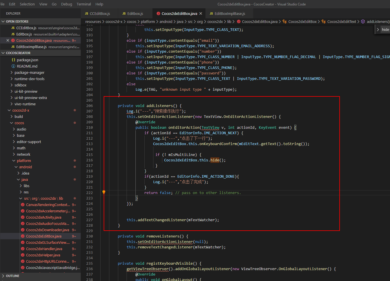 没bug 没bug ,是我们自己改的, 我们把输入框上面那一栏显示输入内容的地方给去掉了。 然后今天我测试的时候发现,那一栏后面有个完成, 原来这个完成才能听到我们的监听this.node.on(“editing-return”,this.editReturn,this)。