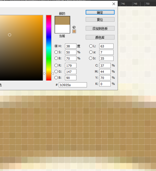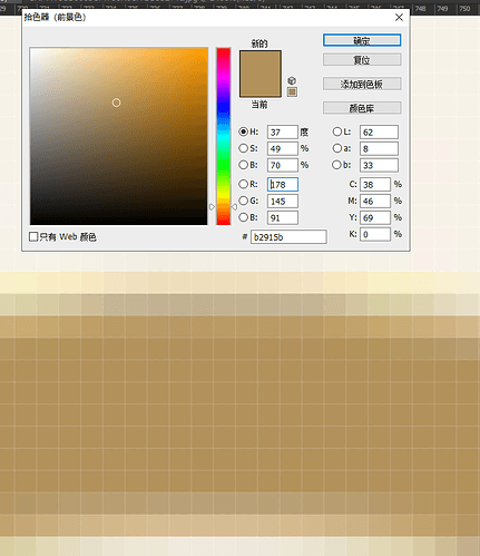 在使用另外一个手机(Redmi 10X)时,大片区域设置为#b3915a时,吸出来的色彩为#b29259,但色彩均匀,